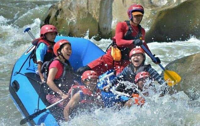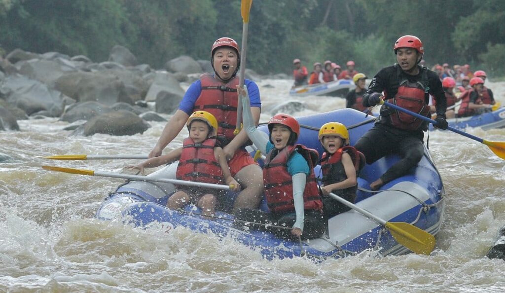 “Durasi wisata rafting ini 2 sampai 3 jam, dan itu sudah termasuk waktu pemanasan dan waktu istirahat,” terang Arum.