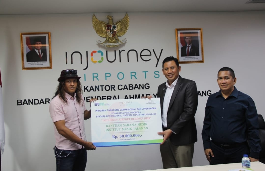 Penyerahan bantuan TJSL PT Angkasa Pura Indonesia Kantor Cabang Bandara Internasional Jenderal Ahmad Yani Semarang diserahkan secara simbolis kepada Institut Musik Jalanan, Mushola Koramil 01 Semarang Barat, Mushola Hidayat Mustaqim dan yang terakhir bantuan kepada Mushola Al Hidayah oleh General Manager PT Angkasa Pura Indonesia Kantor Cabang Bandara Internasional Jenderal Ahmad Yani Semarang, Fajar Purwawidada dengan nilai total sebesar Rp 109.845.000, –