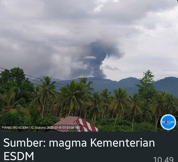 Halmahera, E Channel.co.id – Gunung Dukono yang terletak di utara Pulau Halmahera, hari ini, Selasa (15/7) mengalami erupsi beberapa kali dengan ketinggian kolom letusan sekitar 1 km. Abu letusan menyebar ke sejumlah arah sehingga mengganggu kualitas udara.