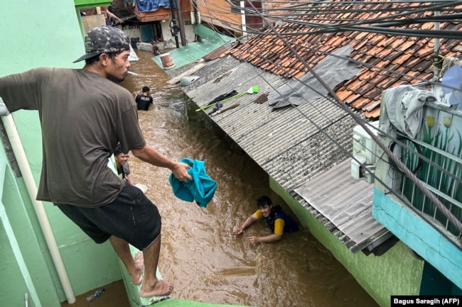 Hingga pukul 14.000 WIB pada Selasa, sejumlah wilayah di Bekasi masih terendam banjir menurut laporan pandangan warga setempat. Hujan juga kembali mengguyour wilayah selatan Jakarta dan sekitarnya pada Selasa sore. [ah/rs]