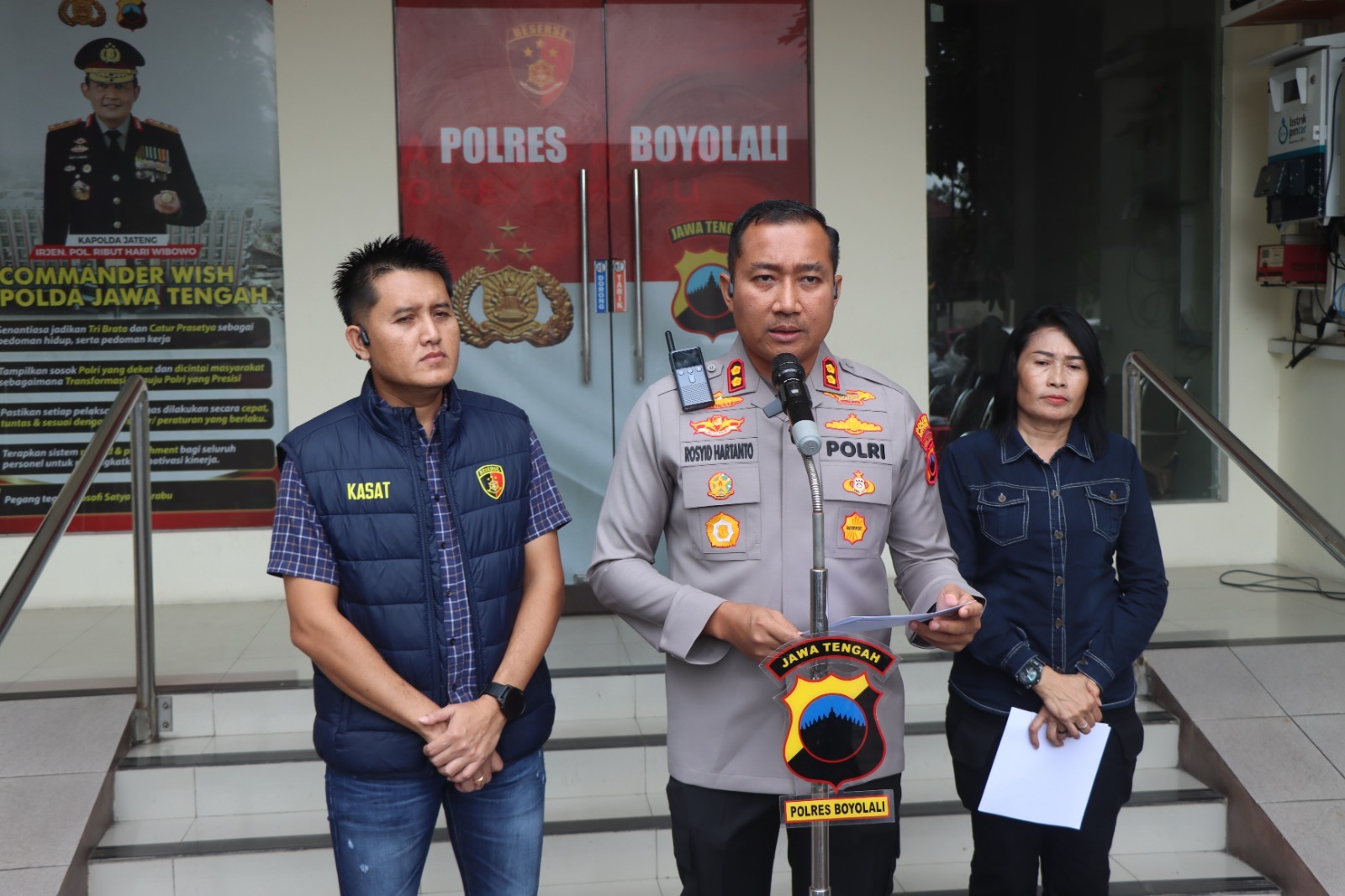 Boyolali – Kapolres Boyolali AKBP Rosyid Hartanto secara resmi mengumumkan keberhasilan Satuan Reserse Kriminal (Satreskrim) Polres Boyolali dalam mengungkap kasus tindak pidana kekerasan terhadap anak yang berujung pada meninggalnya seorang pelajar. Hal ini disampaikan Kapolres kepada awak media pada konferensi pers yang digelar di Mapolres Boyolali, didampingi oleh Kasatreskrim AKP Joko Purwadi dan Plt. Kasihumas IPTU Winarsih, Jumat (23/5/2025).