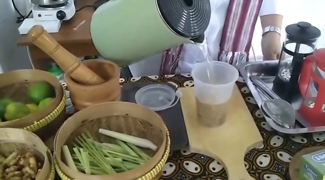 “ Wedang atau jamu di sini spesial karena bisa tahan sampai 1 tahun. Prosesnya melalui proses yang tidak hanya satu proses saja , yang paling utama adalah pencucian yang bersih kemudian ada proses matahari dan ada proses-proses lanjutan sehingga wedang-wedang ini bisa tahan sampai 12 bulan karena kita orientasinya adalah untuk export dan untuk memberikan kualitas yang bagus ,” kata Pengelola Griya Jamu Mas Guru Itur Yuliastik.