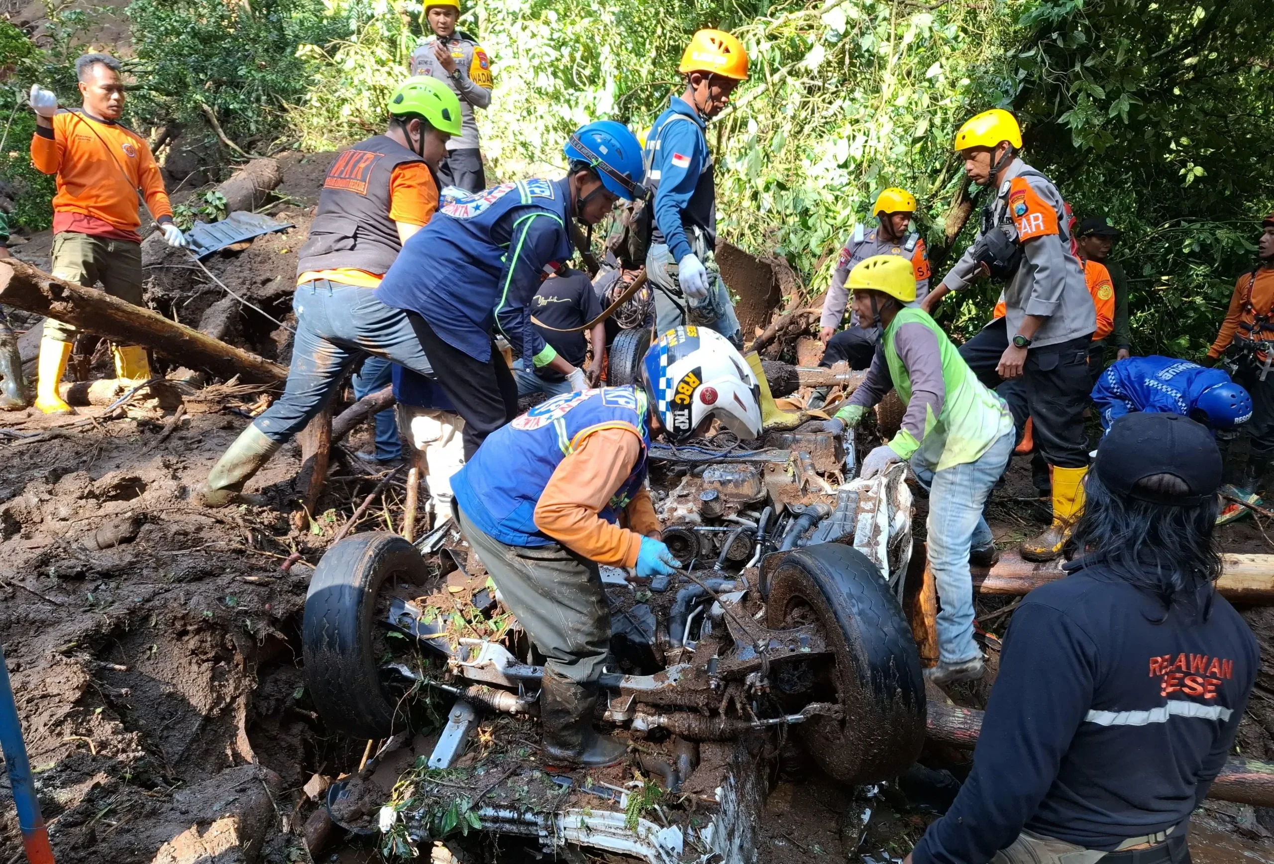 Tim gabungan berhasil menemukan 10 korban yang tertimbun material longsor di kawasan wisata alam Watu Ondo, tepatnya di area tebing Watu Tumpak, Kecamatan Pacet, Kabupaten Mojokerto, Jawa Timur, pada Kamis (3/4). Semua korban ditemukan dalam kondisi meninggal dunia di dalam dua kendaraan, yakni sebuah minibus dan satu mobil pikap. Proses evakuasi sempat terkendala cuaca dan medan yang terjal, namun kini fokus utama bergeser ke pembersihan material longsor dan pemulihan jalur wisata.